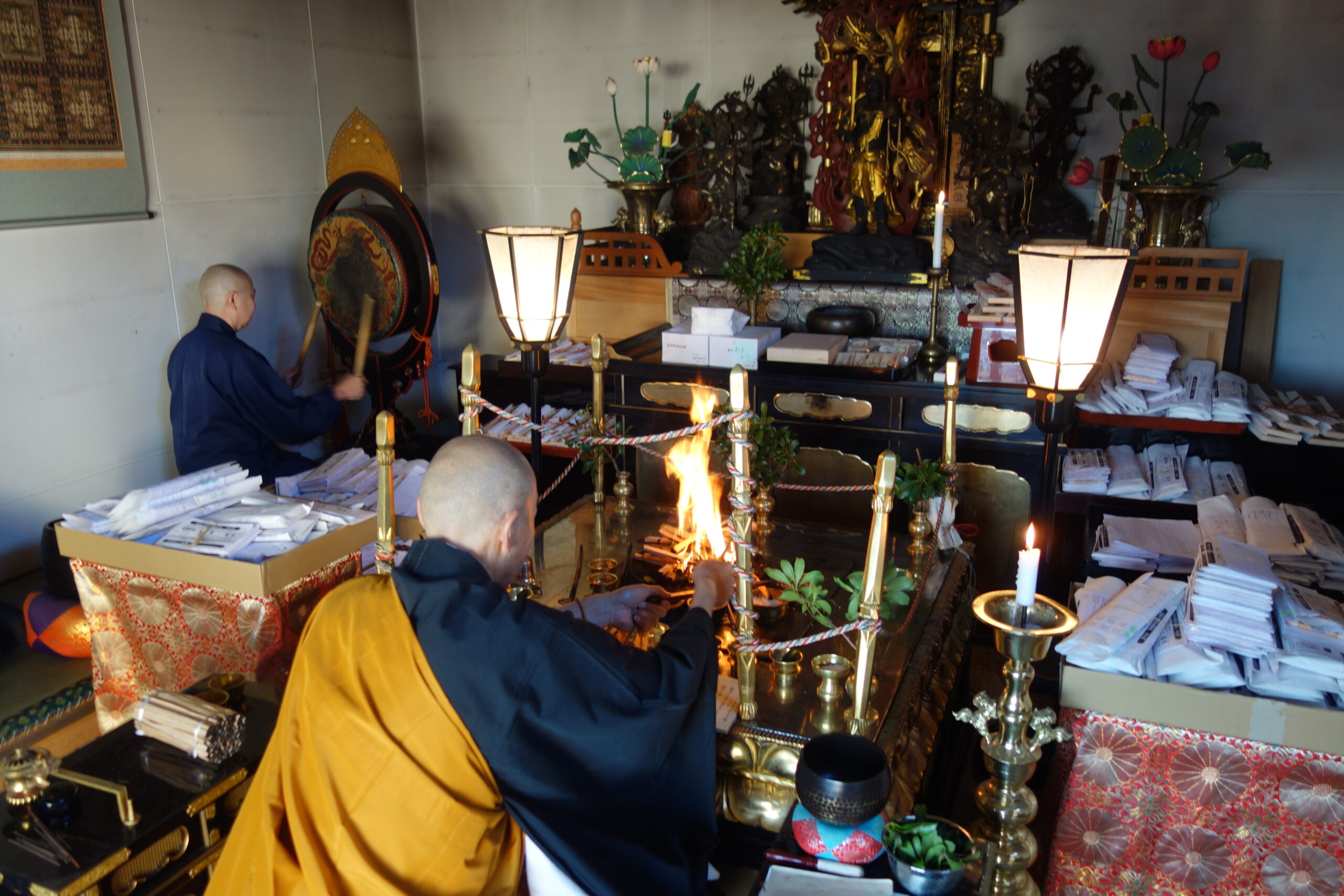 釈迦寺では、この護摩にて「来年のお守り」と、皆様からご依頼を頂いた「厄除けお札」を祈願しました。