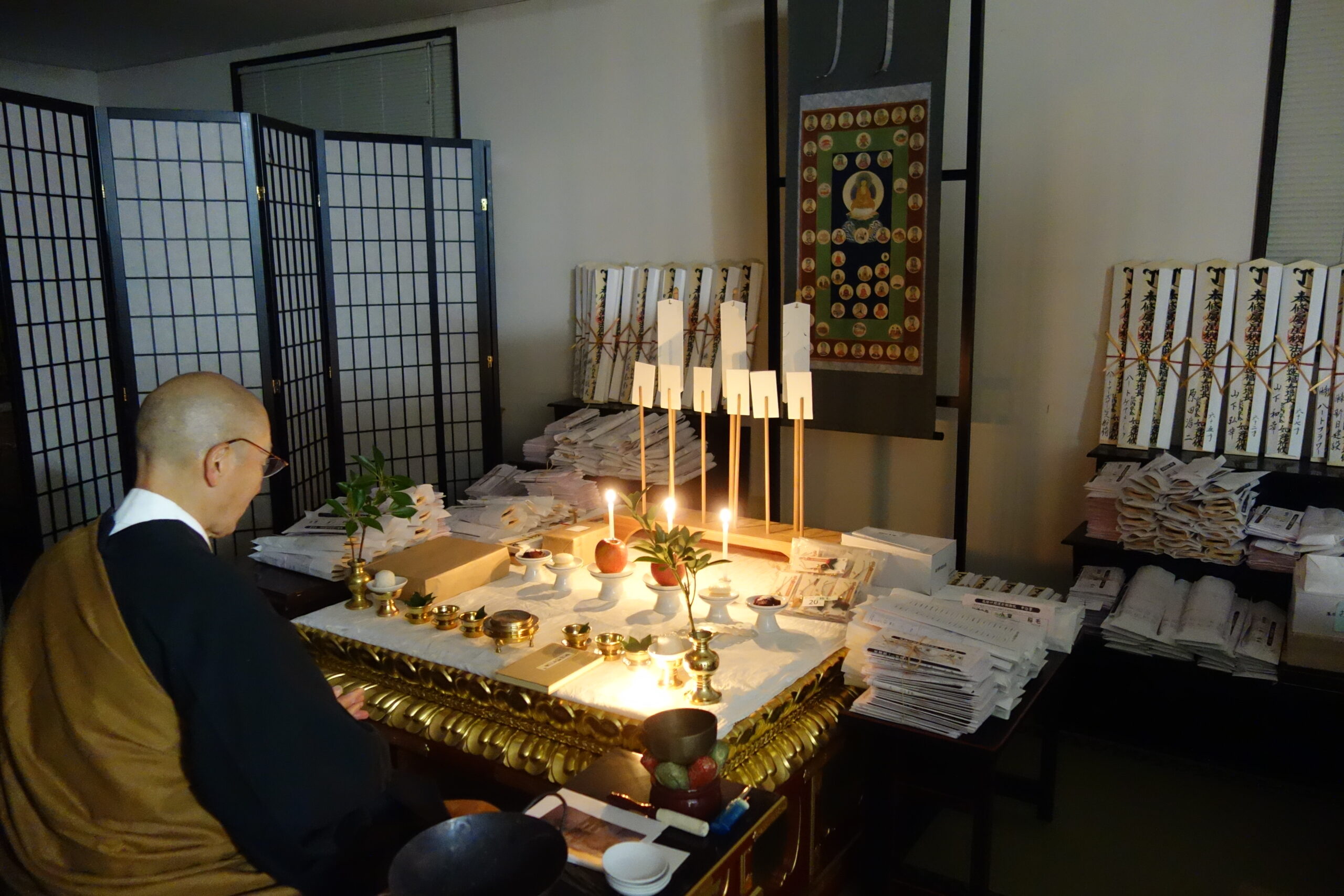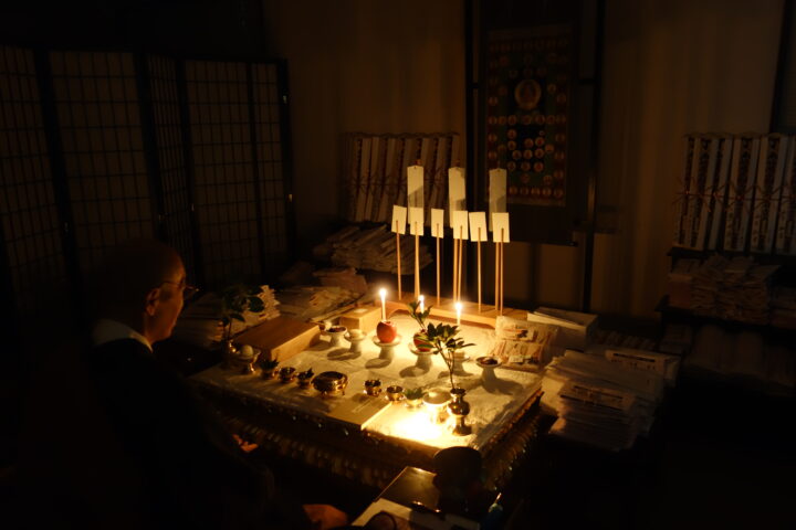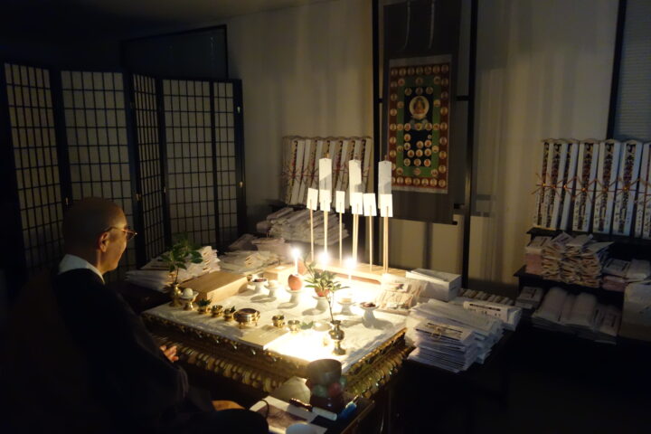 「厄除け祈願会」に申し込まれた方のお札は、今日の星供養会から拝み始めて、28日の不動護摩、元旦の修正会(しゅしょうえ)で結願します。(詳しくは敬愛秋号の2ページ、3ページをご覧ください。)